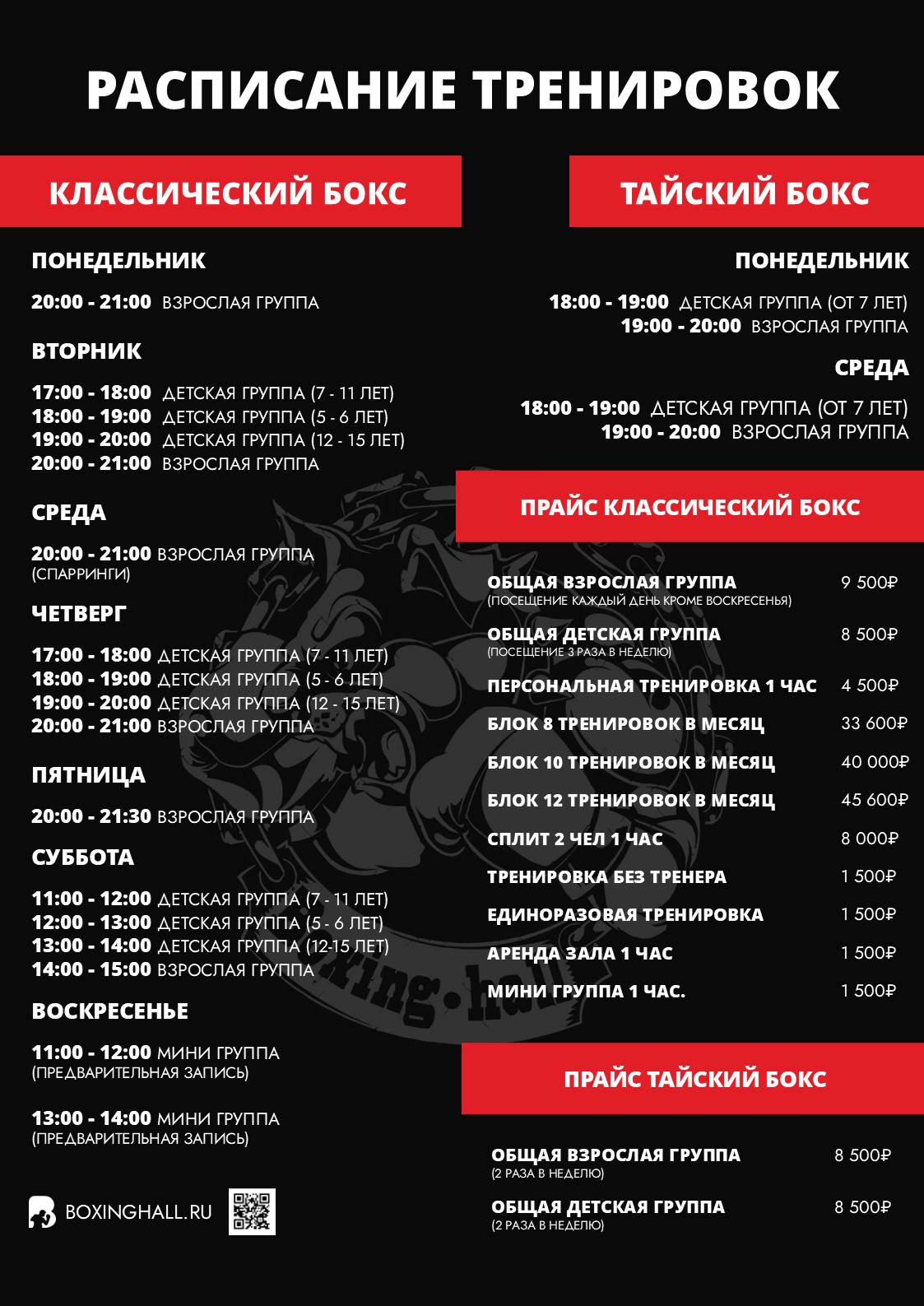 - Часы работы клуба бокса «Boxing Hall» (далее Клуб): 9:00 – 23:00.